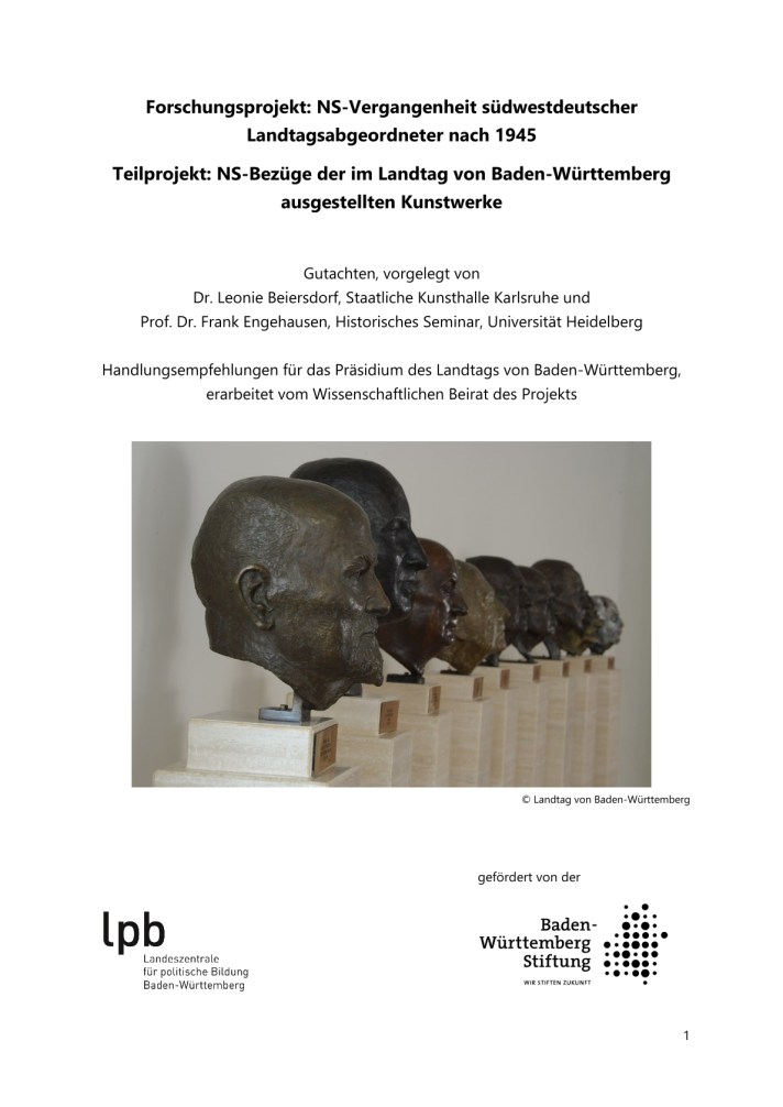 (gemeinsam mit Leonie Beiersdorf für die Landeszentrale für politische Bildung Baden-Württemberg) NS-Bezüge der im Landtag von Baden-Württemberg ausgestellten Kunstwerke (Gutachten im Rahmen des Forschungsprojekts „NS-Vergangenheit südwestdeutscher